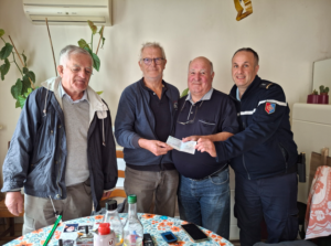 Ensemble lui avons remis un chèque d’un montant de 900 euros. Cette aide exceptionnelle, accordée par la commission sociale nationale de l’ UNPRG, va venir l’aider à aménager son véhicule personnel suite à son amputation de sa jambe droite au niveau du genou.