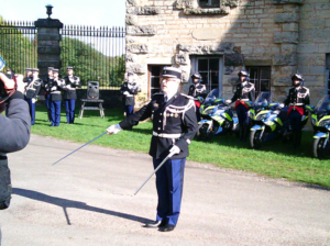 Le 8.10.25, à l’invitation du Colonel Delalonde Commandant le Groupement de Haute-Saône, les retraités de l’UNPRG et leur drapeau ont rejoint les troupes sous les armes et les nombreux invités disposés sur le remarquable site de l’ancienne forge-fonderie de Baignes 70, rappelant par son architecture celle de la Saline Royale d’Arc-et-Senans, le Capitaine Eric Lemoine a reçu le commandement des 25 gendarmes motocyclistes de Haute-Saône. Ce service spécialisé, réunissant les motocyclistes sous l’appellation EDSR, se nomme depuis une semaine EDCF (escadron départemental de contrôle des flux). Ce nouveau nom implique de nouvelles missions sans renoncer à la sécurité routière.