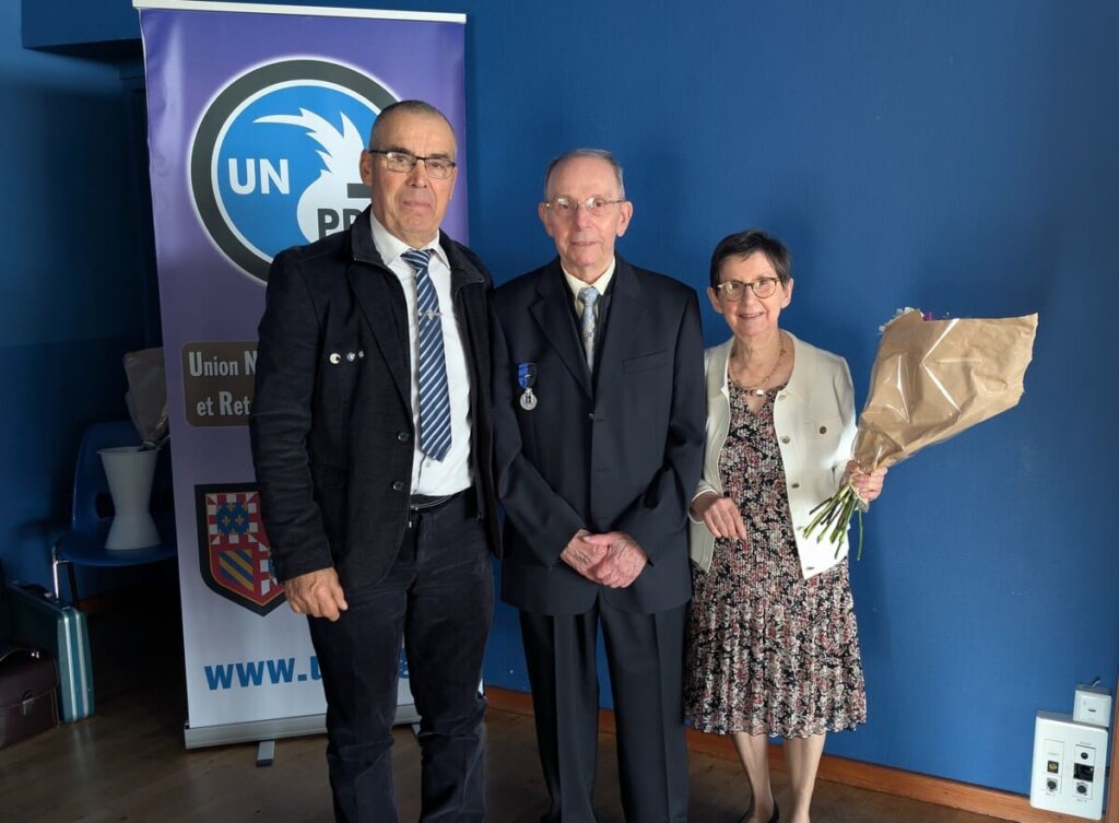 Avant de conclure l’assemblée générale, il a été remis à Marcel Servais, la médaille de l’UNPRG échelon or, pour le remercier de son investissement de plus de 30 ans au sein du conseil d’administration qu’il quitte cette année. Un bouquet de fleurs a été offert à son épouse Lucie pour le soutien qu’elle lui a apporté durant toutes ces années. Enfin un hommage plus particulier a été fait et ponctué également par un bouquet de fleurs à Françoise Guillerm, secrétaire dévouée de l’UD, rouage essentiel au bon fonctionnement de notre association.